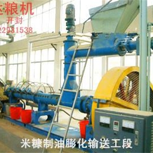 Adopting the expander can both improve the yield of rice bran oil and reduce the consumption. The extrusion puffing, on the one hand, can make solution lipase in the rice bran passivated under high temperature and high pressure condition,then prevent the rice bran oil rancidity; On the other hand, the extrusion puffing can make rice bran be porous material grain, and increases the materials bulk density, then improve the permeability and leaching rate which solvent reacts to the material.