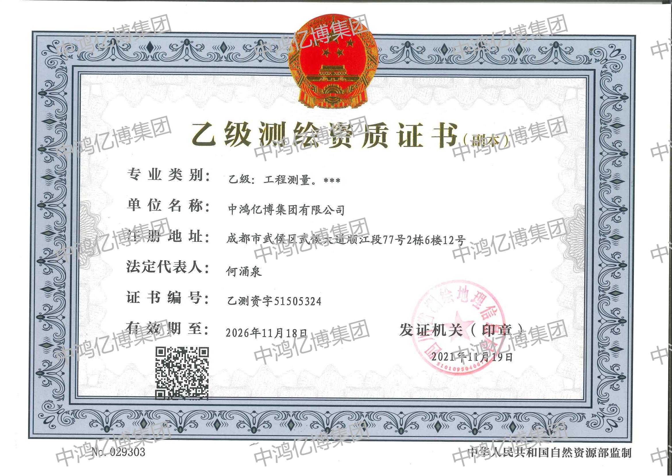 2014年11月取得国家测绘地理局颁发的测绘资质证书(丁级)
