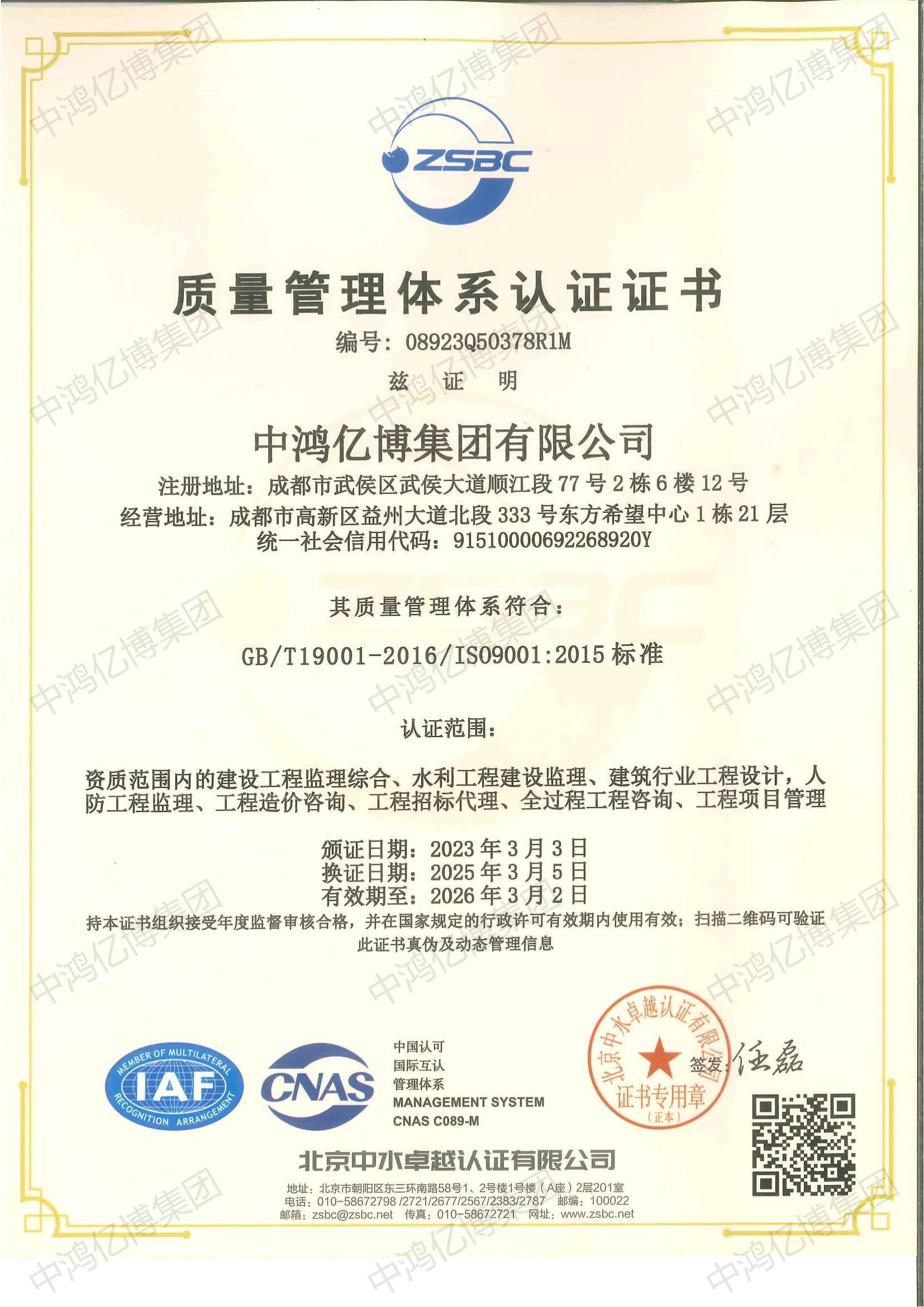 中鸿亿博集团有限公司成立于2009年8月,注册资金1亿元,是一家集工程勘察、工程设计、工程监理、项目管理、工程造价、招标代理、工程咨询、工程测绘、人防工程、检测鉴定及 BIM 于一体的能为建设工程全生命周期提供服务的综合性管理公司。