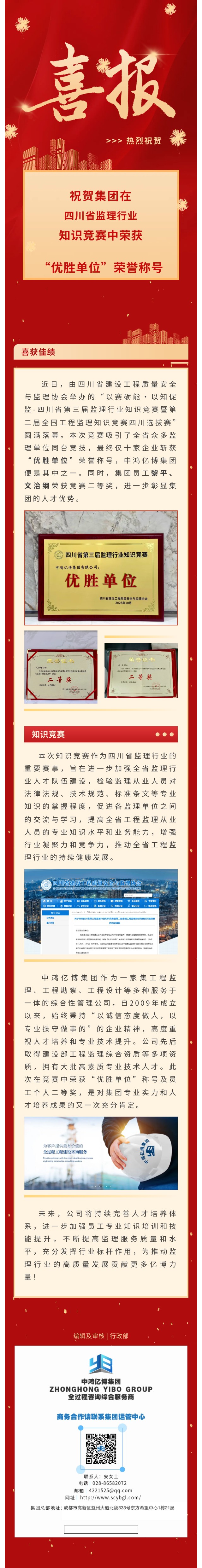 祝贺集团在四川省监理行业知识竞赛中荣获“优胜单位”荣誉称号