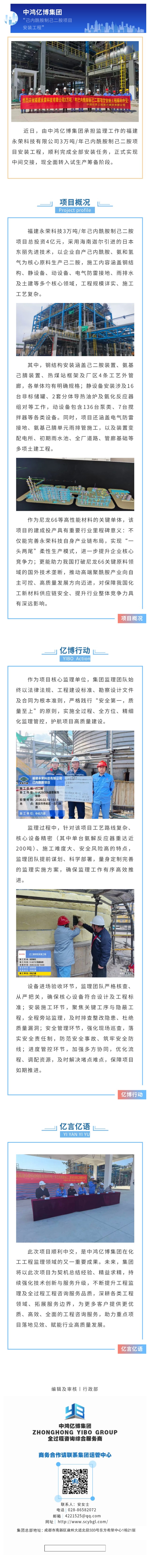 亿博动态 | 祝贺集团监理的己内酰胺制己二胺项目安装工程顺利中交!