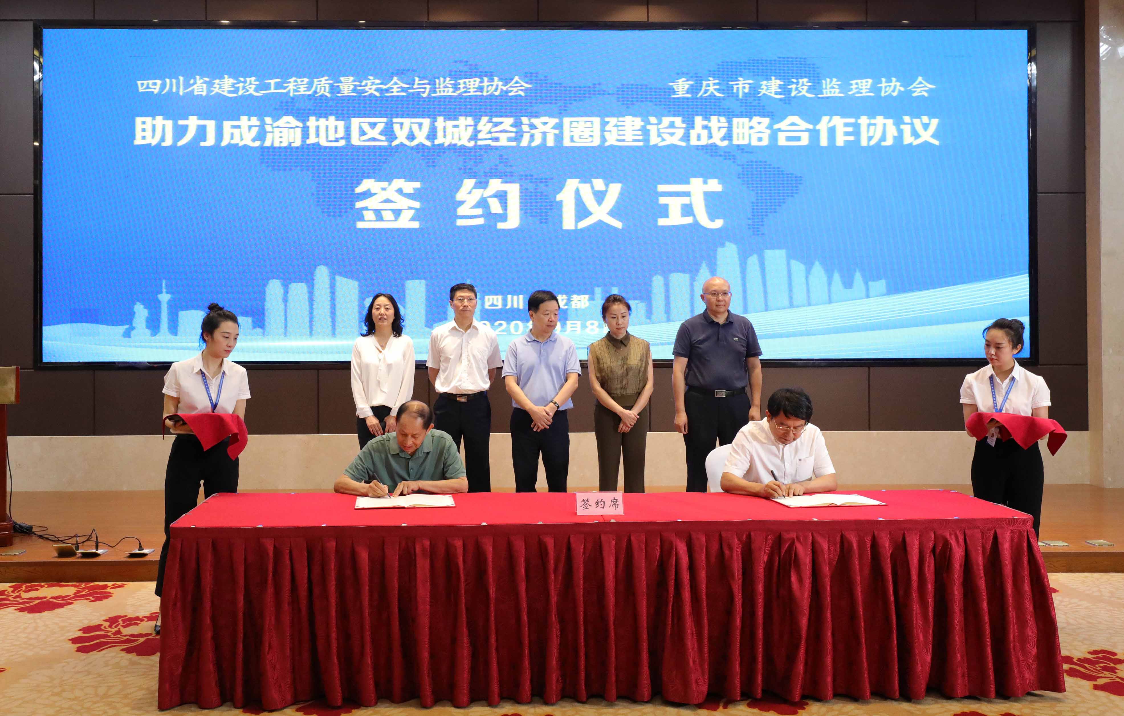 随后,为进一步落实省委、省政府加快推动成渝地区双城经济圈建设的决策部署,共同谋划推动川渝两地工程监理事业合作大计,双方协会代表还签署了《助力成渝地区双城经济圈建设战略合作协议》,共同推动两地合作进入全新阶段和全新局面。