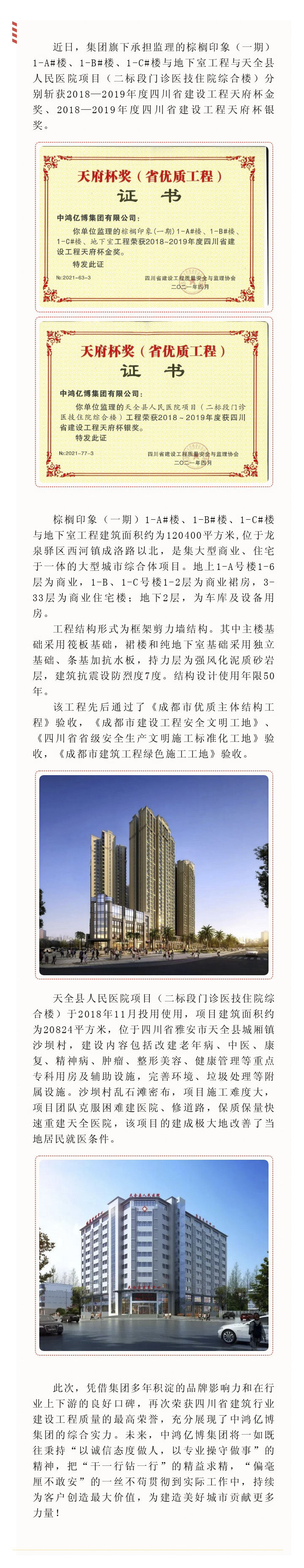 匠心显成效|集团两项目再获四川省建筑行业建设工程质量的最高荣誉