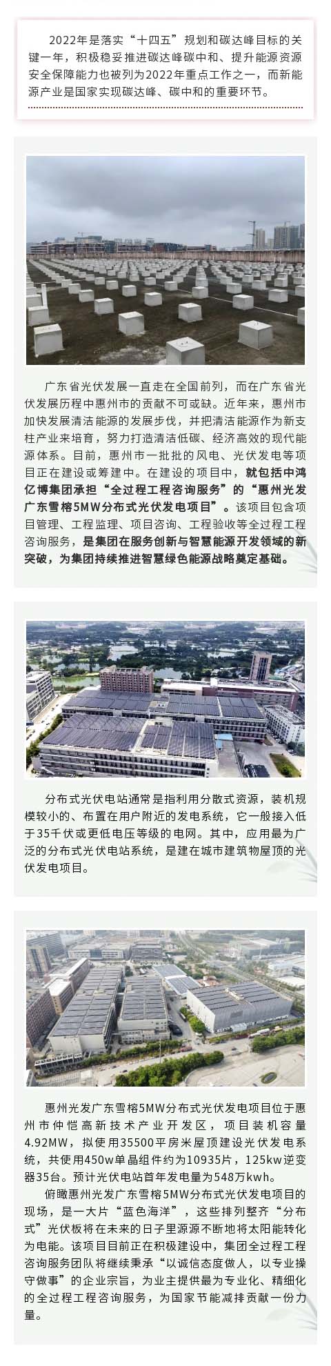 与绿色同行——集团惠州5MW分布式光伏发电全过程工程项目进入加速建设期