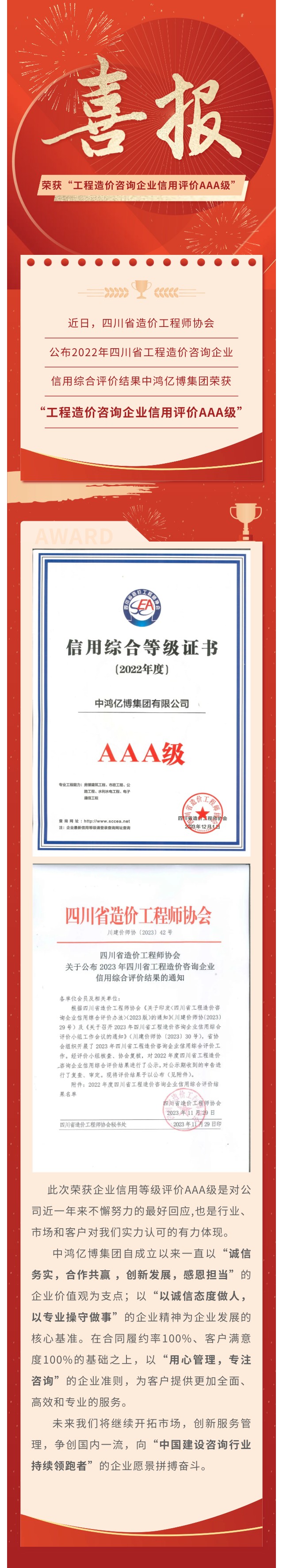 亿博动态 丨 恭喜集团荣获“工程造价咨询企业信用评价AAA级”