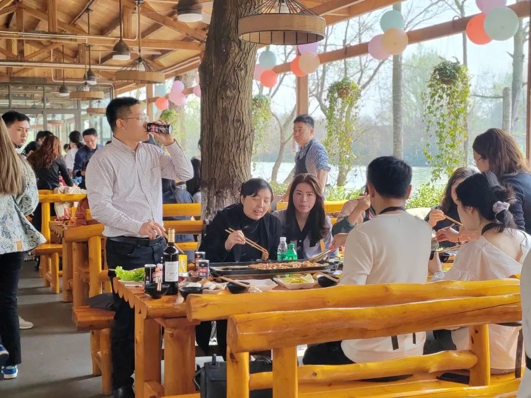 公司为全体员工准备了自助烧烤,选址在河边,让大家能在春季微风中享用午餐。用餐时,各部门氛围融洽,在一片欢声笑语中各诉心事。